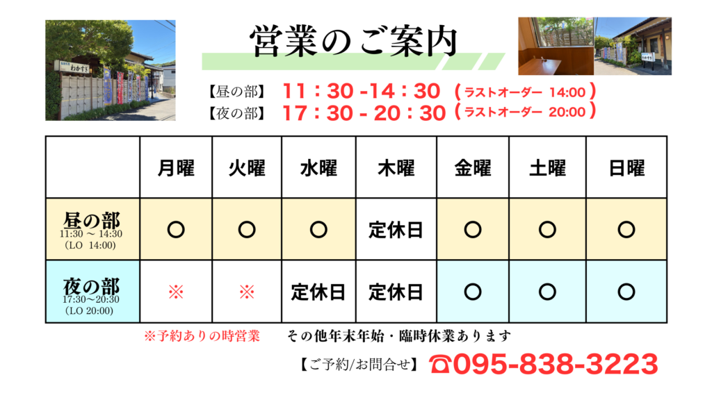 海鮮料理わかすぎ お問合せ:TEL095-838-3223