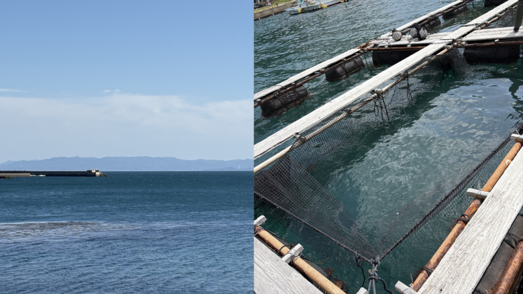 長崎は「まちと海の距離が驚くほど近い場所」と言われますが、当店はその恩恵を最大限に受けています。 私たちが仕入れている「ゆうこうシマアジ」が育つ養殖場は、お店からすぐの橘湾にあります。この近さこそが、長崎ならではの「最鮮端」の美味しさを支える一番の理由です。
