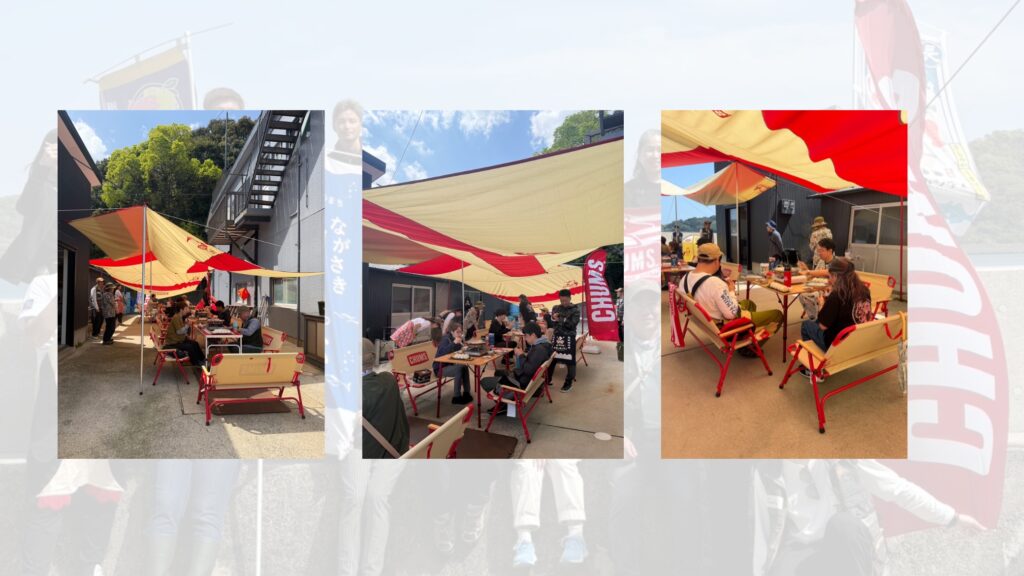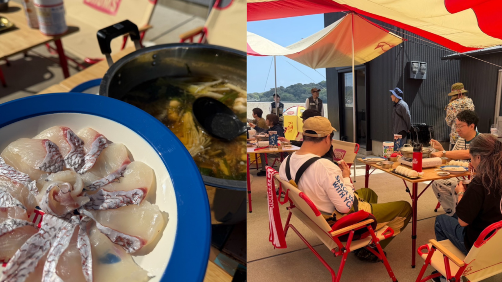 イベント企画の中では、水揚げ体験・刺しゃぶ用刺身の裁きと盛り付け、試食もあり、青空のもとアウトドア体験も楽しみました。意外と盛り上がったお魚釣りカードゲーム「ギョっと」。どの体験も、食を通じて人と繋がる喜びに溢れていました。一皿を囲んで大切な方との会話が弾む——。